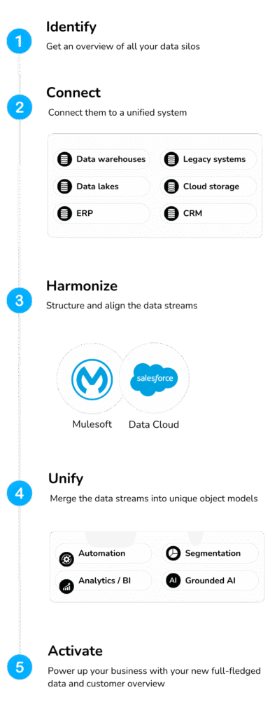 Design customized growth roadmaps that integrate Salesforce capabilities and AI to ensure long-term scalability, with clear milestones and performance metrics to track progress.